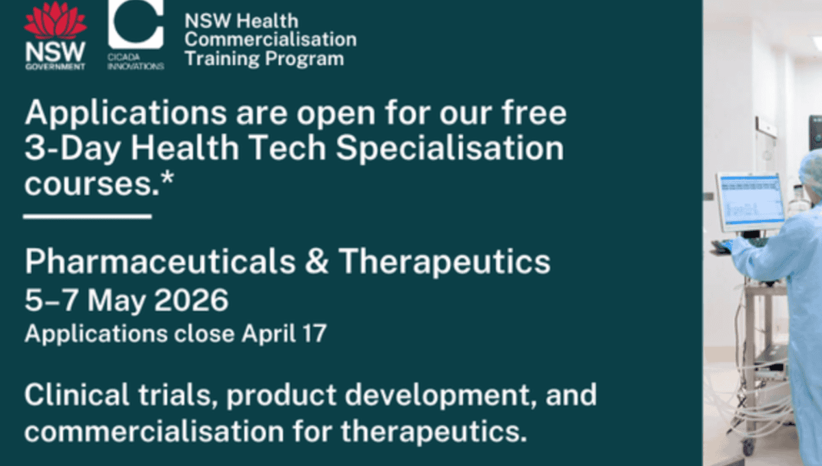 Delivered with Sydney Pharmacy School, this program is for entrepreneurs and researchers advancing pharmaceutical and therapeutic innovations. Explore regulatory pathways, clinical trial strategies, product development, and funding opportunities. Participants will create a comprehensive portfolio including...